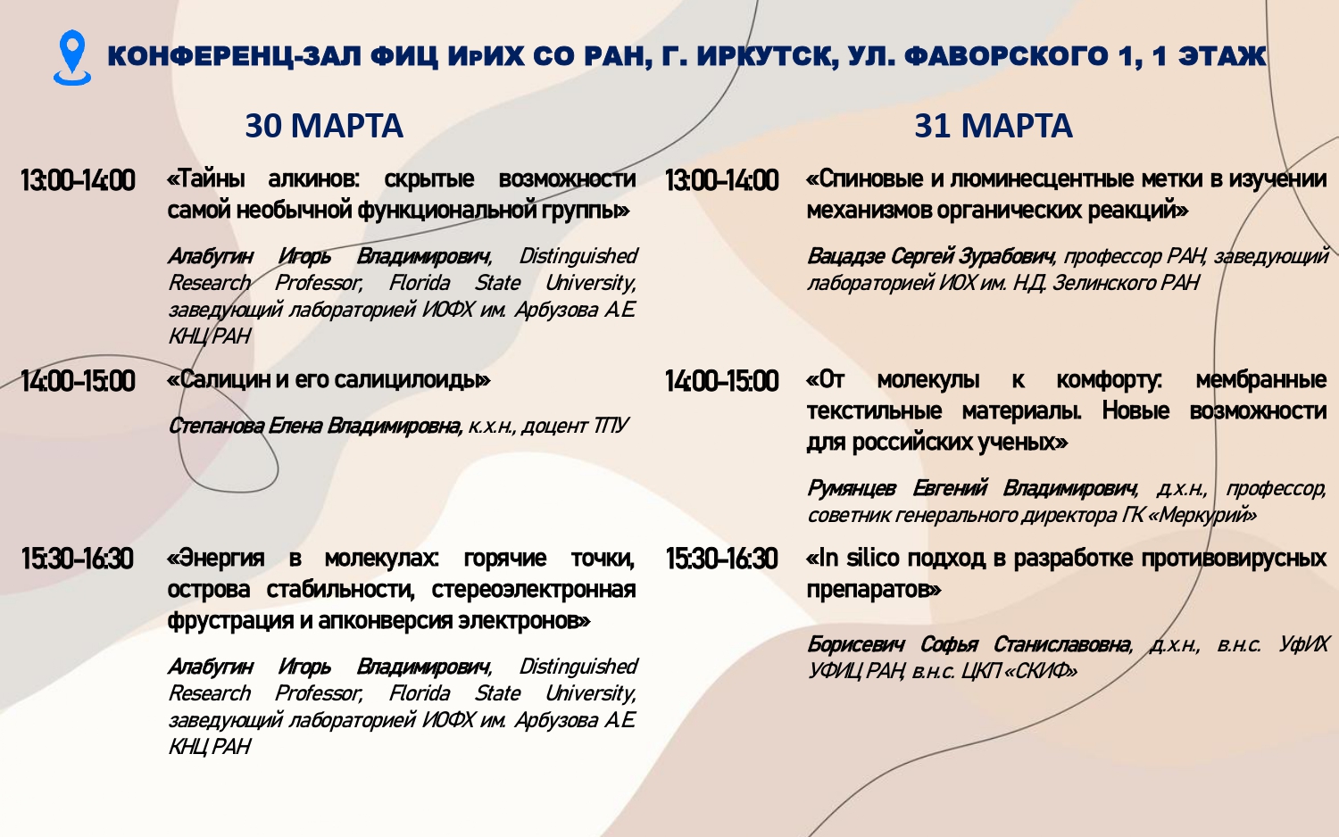 30 и 31 марта в конференц-зале ФИЦ «Иркутский институт химии им. А.Е. Фаворского СО РАН» пройдёт научно-популярное мероприятие «Внезапный лекторий 2».