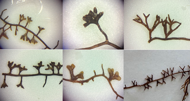 Рисунок 2.Основные морфотипы микориз сеянцев Pinus silvestris при инокуляции их L. bicolor и C. caperatus
